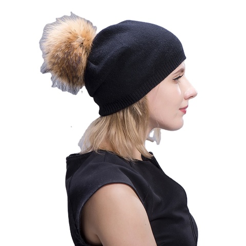 מוופור אופנה ראבון כובע beanies cashmere כובע קשמיר עם פומפ פרווה לנשים קשמיר יוקרה בחורף