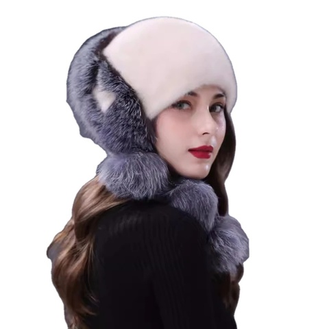 MWFur Moda Inverno Quente Mink Chapéus das Mulheres Mink Fur Hat Senhoras Protetor de Orelha Chapéus De Pele Boinas