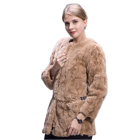 معطف فرو أرنب حقيقي طبيعي من MWFur للنساء بأكمام كاملة معاطف شتوية فاخرة سميكة