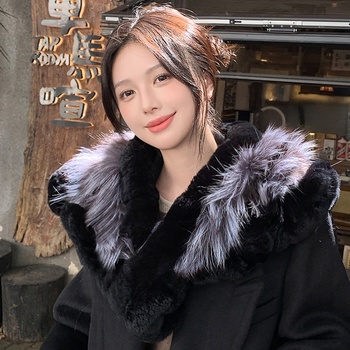 Bufanda de piel de conejo Real Rex con piel de zorro, chal de piel de nuevo estilo, encogimiento de hombros, calentador de cuello grueso cálido para invierno