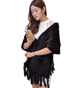 MWFur, bufanda cálida de pelo de visón de invierno a la moda para mujer, bufanda de piel de visón a la moda, chal de piel de punto para mujer con bolsillo