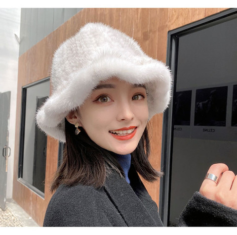 Cappello a secchiello con pelliccia di visone bianco invernale MWFur cappello da donna con cappello di pelliccia di visone lavorato a mano di lusso