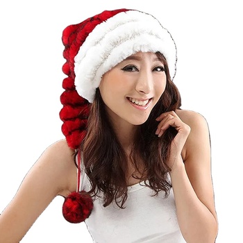 MWfur regalo di natale novità divertente cappello di babbo natale inverno caldo pompon moda Rex pelliccia di coniglio cappello di natale per le donne ragazze berretti di pelliccia