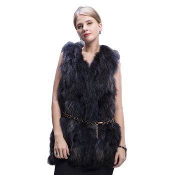 MWFur ผู้หญิงถนนแฟชั่นฤดูหนาวหนาขนเสื้อแขนยาวฤดูหนาว Raccoon ขนเสื้อกั๊กแขนกุดพร้อมเข็มขัดและกระเป๋า